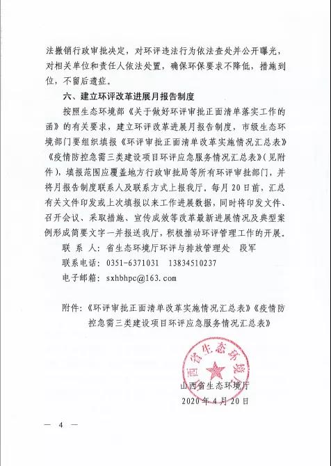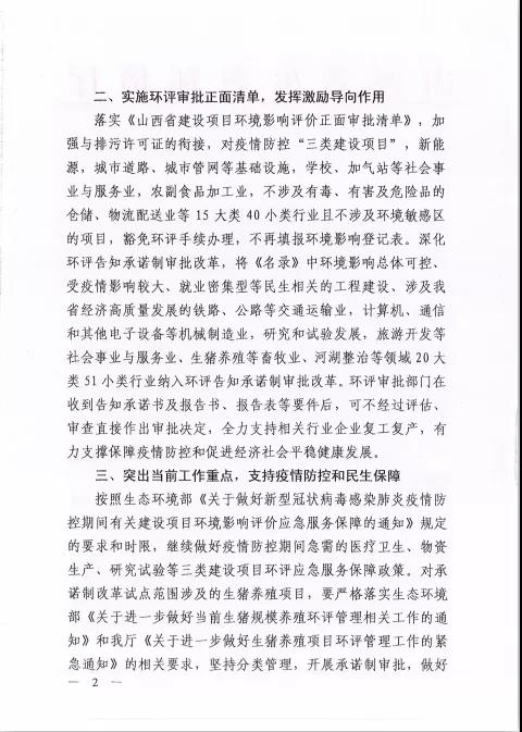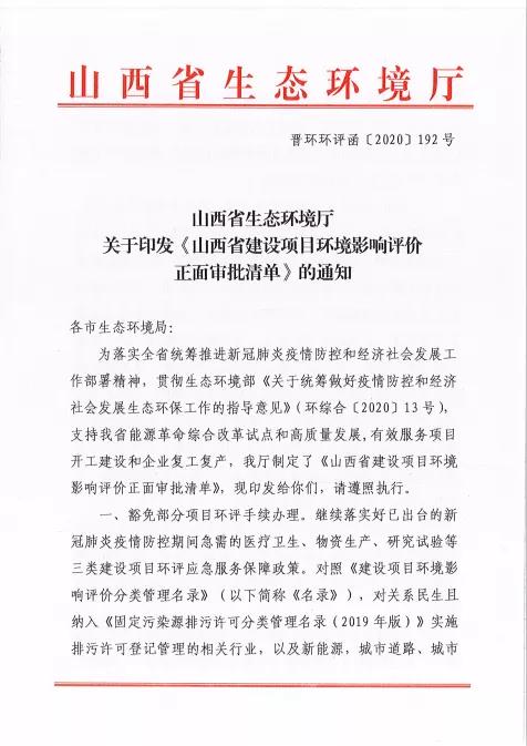 山西生態環境廳連發晉環環評函【2020】192號、193號文件,貫徹落實環評審批正面清單